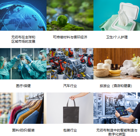 同时,展会同期高峰会议“可持续创新与全球协作:开启亚洲无纺布未来”,会汇聚无纺布领域的顶尖专家与思想领袖,演讲嘉宾涵盖无纺布材料领域的技术先驱、医疗/汽车/旅游应用方案的创新实践者、智能制造与可持续发展的行业思想领袖、拥有改变产业链的颠覆性见解等,会议聚焦议题包括但不限于,见下图: